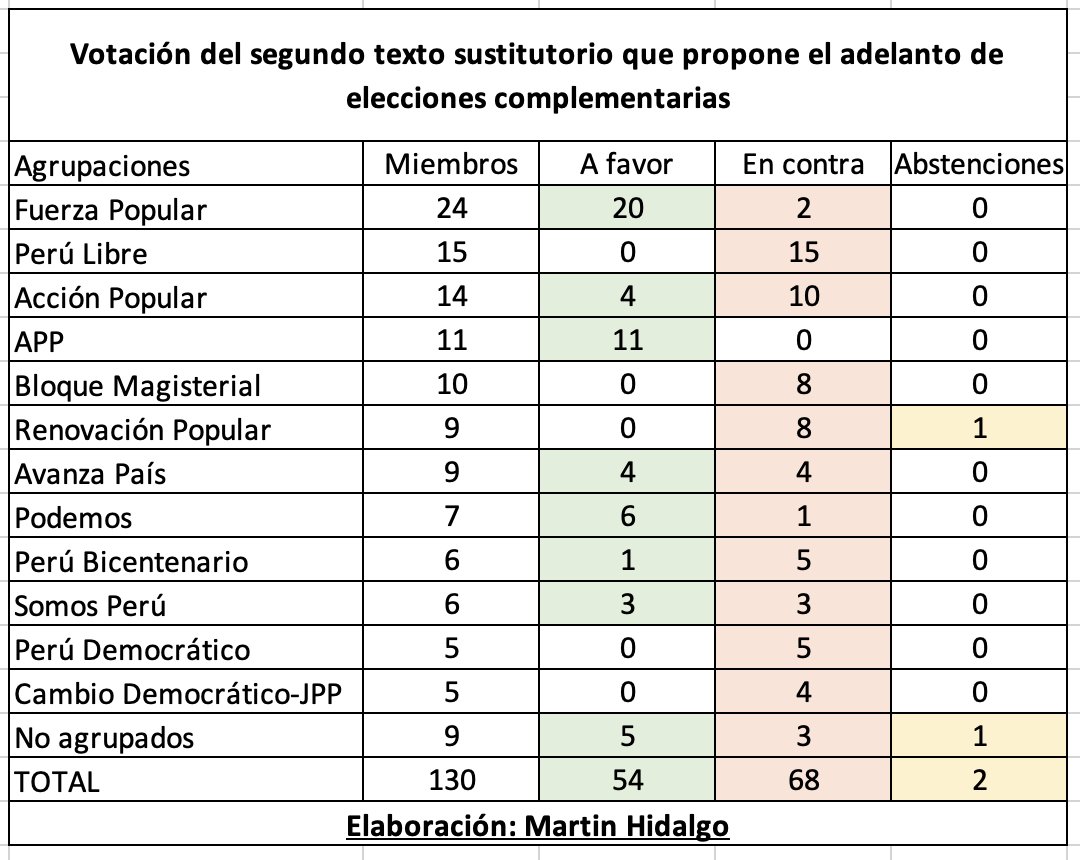 Las denominadas elecciones complementarias habían sido planteadas mediante un texto sustitutorio del congresista Hernando Guerra García, presidente de la Comisión de Constitución.