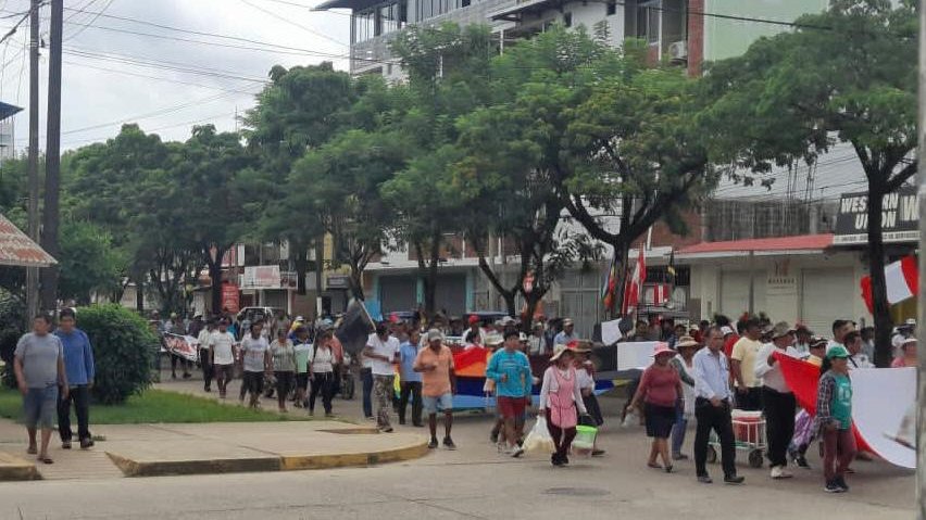 Entre los que salieron a manifestarse se encuentran gremios de trabajadores, comerciantes, frentes de defensa, dirigentes campesinos, pueblos indígenas y población local.
