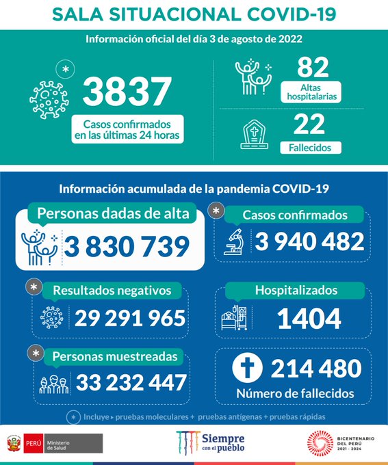 Conoce el estado actual de las camas de cuidados críticos a nivel nacional. #DeNosotrosDependepic.twitter.com/sUNzSCxw86— Ministerio de Salud (@Minsa_Peru) August 6, 2022