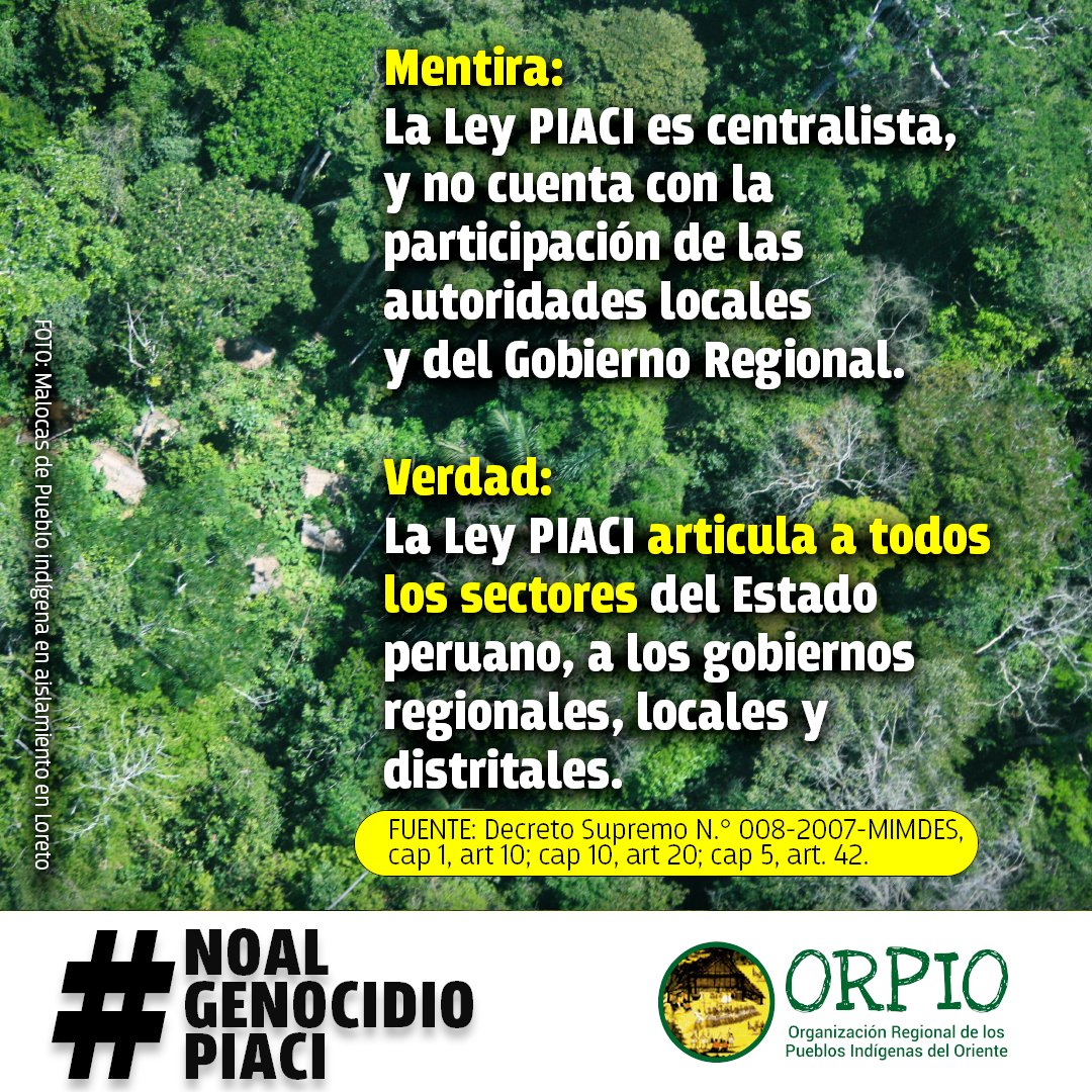 Servindi, 15 de febrero, 2023.- La Organización Regional de Pueblos Indígenas del Oriente (Orpio) elaboró unas gráficas que desmienten cinco afirmaciones falsas sobre la ley que protege a los pueblos en aislamiento y contacto inicial (Ley PIACI).