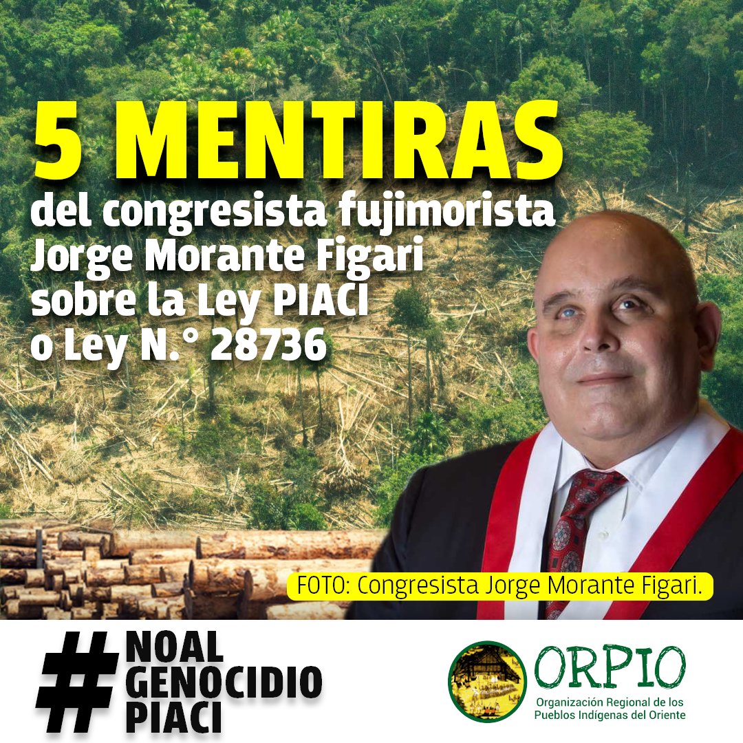 Federación indígena desmiente cinco afirmaciones que el congresista fujimorista Jorge Morante hizo sobre la Ley PIACI en su proyecto de ley que busca modificar esta norma.