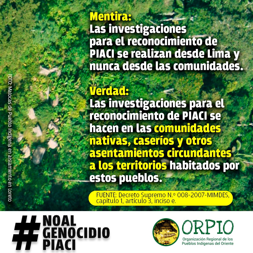 Además, demuestran que la Ley PIACI no excluye la participación de autoridades locales, que los PIACI sí existen y que las investigaciones para el reconocimiento de estos pueblos se hacen en el territorio.