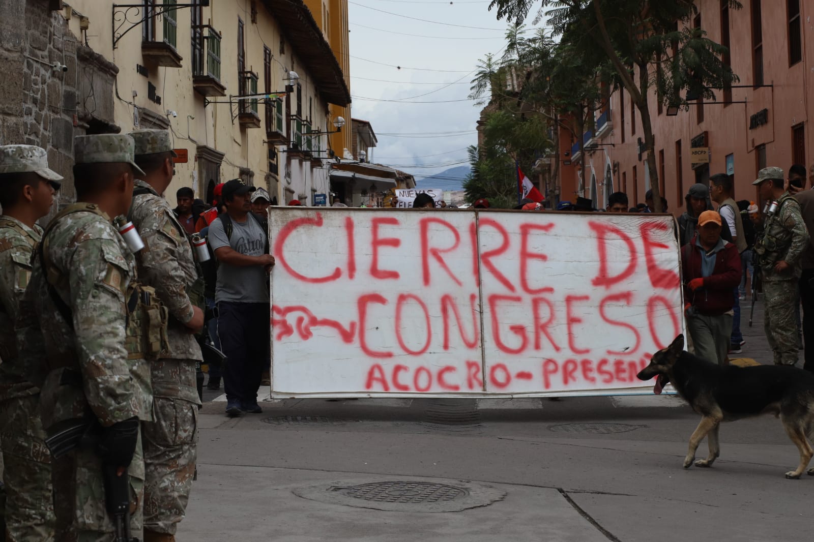 En Ayacucho, la población se concentra en la Plaza de Armas de Huamanga. Se reportan militares armados con rifles de largo alcance, aunque por ahora todo es pacífico y se espera la llegada de más personas.