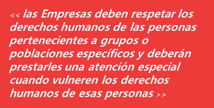 Asimismo, que las Empresas deben respetar los derechos humanos de las personas pertenecientes a grupos o poblaciones específicos y deberán prestarles una atención especial cuando vulneren los derechos humanos de esas personas”