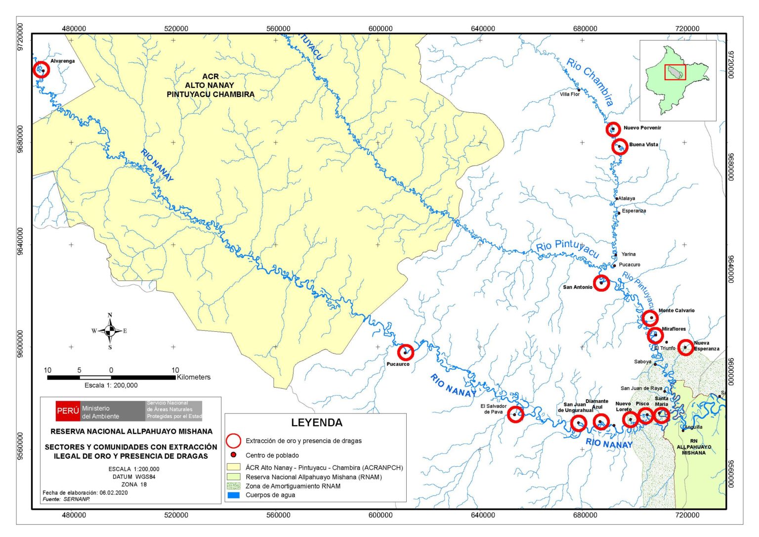 SPDA, 25 de febrero, 2020.- Ante las denuncias que advierten la presencia de dragas en las aguas del río Nanay –situadas en la parte alta de la cuenca–, el Servicio Nacional de Áreas Naturales Protegidas por el Estado (Sernanp), a través de la jefatura de la Reserva Nacional Allpahuayo Mishana (RNAM), registró la presencia de estas embarcaciones en la zona de amortiguamiento del área protegida.