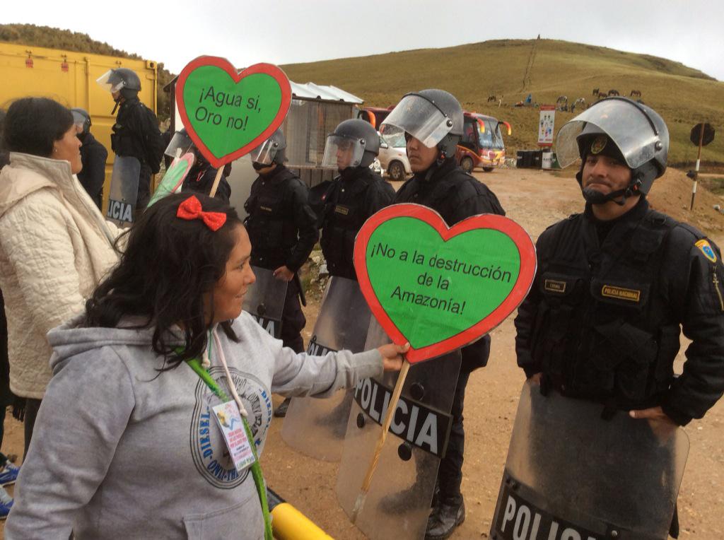 En este sentido expresamos nuestra más enérgica protesta por el hostigamiento recibido por la delegación cajamarquina, entre los que se encuentra el líder ambiental Marco Arana, entre otros.