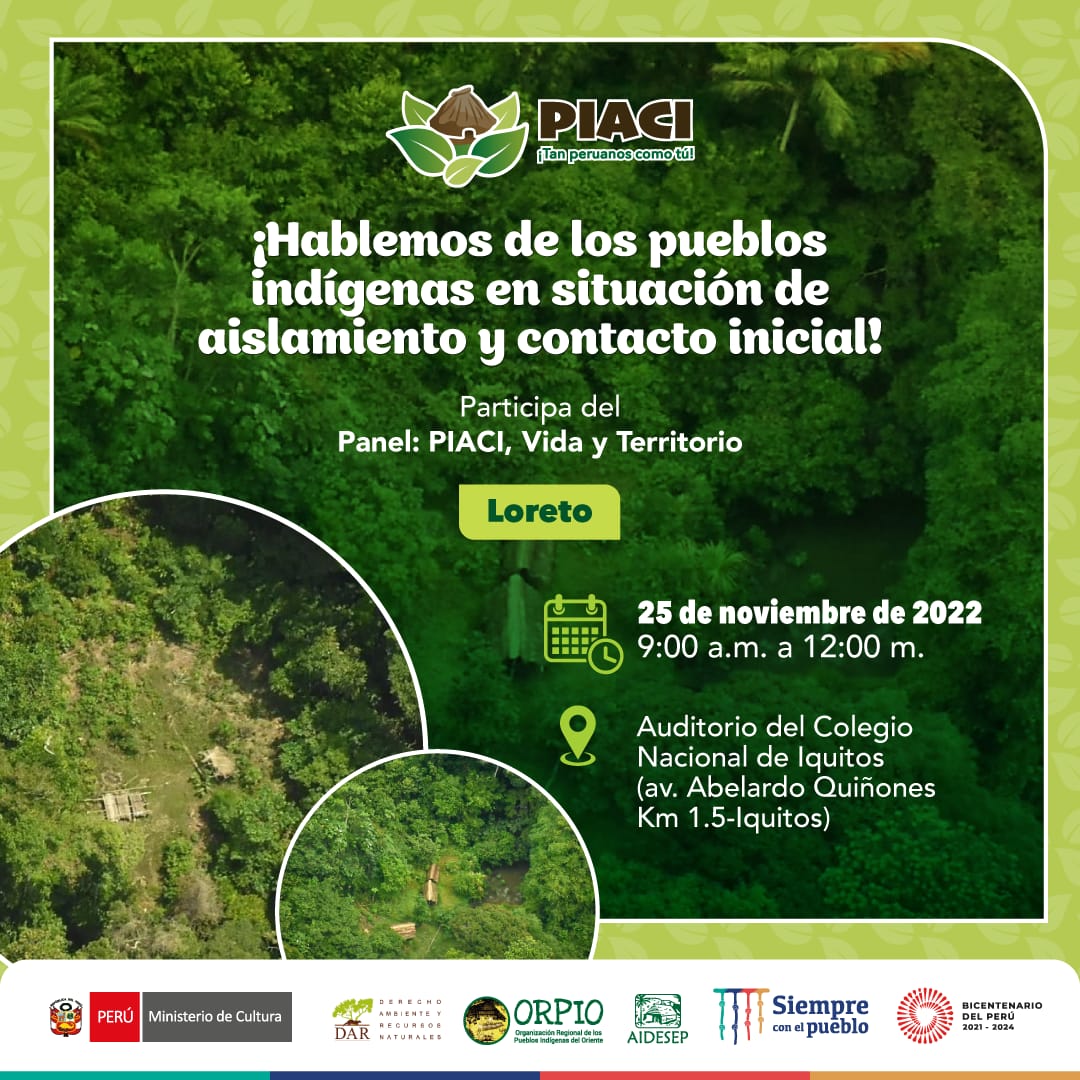 Servindi, 23 de noviembre, 2022.- Un panel para conocer más sobre la vida y el territorio de los pueblos indígenas en situación de aislamiento y contacto inicial (PIACI) se realizará este 25 de noviembre, en Iquitos (Loreto).