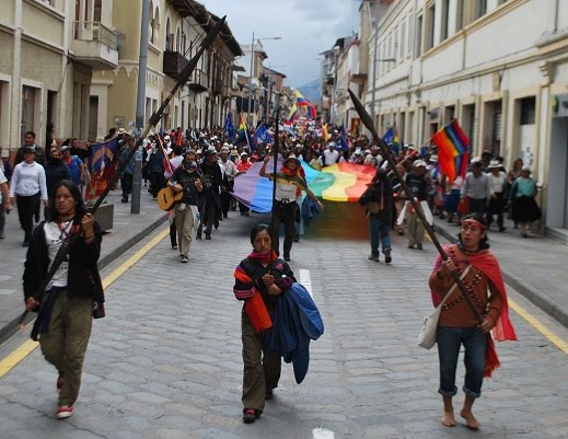 A partir del 8 de Marzo, los pueblos indios, campesinos, mujeres, trabajadores, estudiantes, docentes y más sectores populares del Ecuador han iniciado una movilización nacional en contra de la política extractivista, de la criminalización de la protesta social, y por la defensa del Agua, la Vida y la Dignidad de los Pueblos. En esta marcha se expresan muchas de las históricas demandas de los pueblos del Ecuador como las contenidas en los principios y derechos de la Constitución de Montecristi, como son los derechos humanos, colectivos y de la naturaleza, la defensa de los derechos laborales de los trabajadores injustamente despedidos, la salvaguardia de la autonomía universitaria, el rechazo a la negociación de un TLC, abierto o camuflado, con la UE, tal como rechazamos en su tiempo el TLC con los EE.UU. y otras conquistas democráticas desconocidas por el gobierno. La marcha culminará en Quito el 22 de Marzo, precisamente el día mundial del Agua.